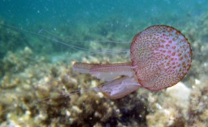 medusa (luminosa di notte) ha un diametro di circa 10 centimetri con tentacoli