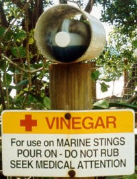 aceto (vinegar in inglese) per un primo soccorso; bisogna anche togliere gli eventuali tentacoli o pezzi dell’animale dalla pelle con