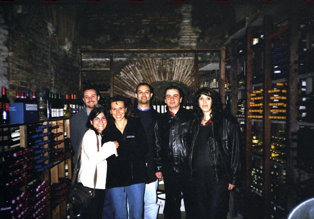 La cantina è ricavata nella più antica Sinagoga non distrutta di tutto l’ebraismo ed è risalente agli anni dell’impero Romano Partendo da sinistra verso destra : Francesca con Giorgio dietro, Cristina, Marco non rasato al centro, io ( Steve ) con Maria a meno di un mese dal parto di Maeva. Le foto sono di Max Nimblecoso… ( che non appare nella foto perchè dietro l’obbiettivo ! ) |