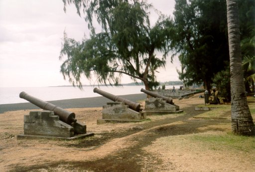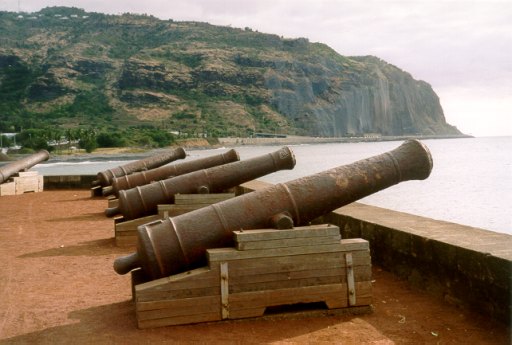 St. Denis è una città caotica, il centro amministrativo dell’isola e delle maggiori attività commerciali. Poichè abitando in una metropoli volevo evitare il caos mi sono limitato ad un giro breve della città per altro non molto interessante; da segnalare i vari templi di culto (la Pagoda cinese, la Moschea, il tempio Indù…comunque presenti anche nelle altre cittadine) e verso l’uscita Ovest una zona chiamata Barachois dove nei giardini fronte-mare troneggiano gli antichi cannoni a difesa della costa. Capiterà di vedere in altre cittadine costiere una fila di cannoni, antichi avamposti contro gli attacchi dei pirati, dei corsari o delle navi degli eserciti regolari nemici. Proseguendo sulla costa verso Ovest si prende una superstrada panoramica (autovelox) dove decine di cascatelle scendono dalla scogliera sulla sinistra… a destra l’Oceano in genere in quel punto protetto dal vento sempre molto calmo ma non balneabile; si raggiunge St.Paul l’ex capitale dell’isola, un paese poco interessante come architettura anch’esso caotico ma che ospita dal Venerdì a mezzogiorno al Sabato (a mezzogiorno) il mercato scoperto più importante e colorato di tutta l’isola. Non si può mancare anche perchè si possono fare acquisti a relativamente buon prezzo. La principale mercanzia venduta è la frutta, la verdura e le spezie (soprattutto ginseng,curry e zafferano) ma non mancano i prodotti artigianali locali (esclusive di Reunion sono le borse in pandano esportate in tutta Europa ed i merletti ricamati a mano) oppure quelli derivate dalle etnie africane come oggetti in legno o le tipiche automobiline fatte con le latte e complete di ogni particolare…e poi ancora collanine, stoffe… galline vive. Una cosa che può sembrare strana (e vale ovunque a Reunion): camminare in un mercato dalle fattezze Africane ed Asiatiche, fermarsi ad osservare un oggetto, toccarlo, esaminarlo bene senza che nessuno si avvicini o ti proponga l’acquisto nemmeno dopo chiesto il prezzo, non esiste nessuna forma di insistenza o promozione nemmeno accennata così come è perfettamente inutile contrattare: i prezzi sono fissi ! Alla fine del mercato che si snoda lungo il mare una fila di cannoni. Seguendo il lungomare si esce fuori dal paese ed immediatamente dopo conviene parcheggiare per andare a vedere il più antico dei cimiteri: le Cimitiere Marin (girare a destra seguendo le indicazioni, non parcheggiare lungo la statale).