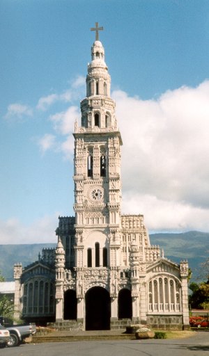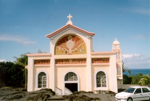 Proseguendo la costiera sempre verso Sud s’incontrano altri “soffleur” ad Arbonne, poi zone di qualche interesse panoramico come Cap Mèchant, poi dei lunghi tratti di strada stretta senza paesi (nè rifornimento) caratterizzati dalle colate di lava più recenti (per esempio quelle del 1986 che fecero aumentare la superficie dell’isola) che hanno terrorizzato gli abitanti della zona…tra queste quelle più famose sono senz’altro quelle del 1977 che hanno minacciato uno dei pochi paesi di questa parte dell’isola: S.te Rose. A memoria di questa colata che si arrestò secondo la tradizione per miracolo della Madonna (la colata si fermò proprio intorno alla Chiesa a Lei dedicata senza distruggerla e salvando il paese) si può visitare la Chiesa di Notre Dame des Laves (nostra Signora delle lave) che è ancora circondata nella parte frontale dal magma originario. Sempre in tema di Chiese da visitare, risalendo la costa verso Nord, a pochi chilometri da S.te Rose, a S.te Anne c’è la Chiesa Eglise esternamente molto bella in stile neobarocco.