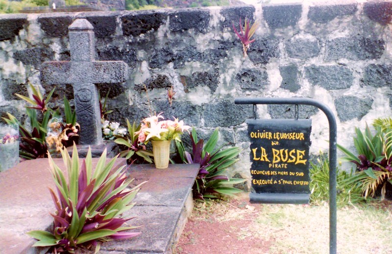 I cimiteri a Reunion sono tutti ben visibili dalla strada, con muri di cinta spesso bassi e pare siano messi apposta in evidenza per ricordarci la transitorietà della nostra esistenza. Alcuni come quello di St.Paul contengono i resti di personaggi famosi della storia o ricordano eventi tragici dell’isola e a questo proposito sono corredati all’entrata da una piccola mappa esplicativa…in particolare nel Cimitero Marino si può osservare la curiosa tomba del pirata Olivier Levasseur (con tanto di teschio ed ossa incrociate scolpite) detto la Buse (ovvero l’avvoltoio) catturato ed impiccato nel 1730, l’ossario dei naufraghi del Ker.Anna del 1894. Altri eventi meno famosi o persone morte anche in tempi recenti sono ricordate con delle lapidi o semplicemente con delle croci lungo tutta l’isola.E’ infatti frequente arrivare in una scogliera e trovare una croce con un epitaffio ai caduti del mare, oppure percorrere una spiaggia e leggere della storia di un ragazzo suicidato e così via; poi ci sono le testimonianze più nascoste di altre religioni: ricordo su un ponte sospeso in un precipizio dei fiori, delle scritte e delle offerte in cibo (probabilmente una pratica animista) in un piatto accanto ad una “globalizzata” bottiglia di Coca Cola semipiena.