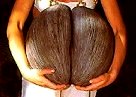 Il Coco de Mer Lodoicea Maldivica, è il nome scientifico della palma che produce un frutto (seme) lungo fino a mezzo metro e che può pesare anche 20 Kg, simbolo delle Seychelles, visibile allo stato naturale solo nella Vallèe de Mai, nell’isola di Praslin e nell’isola di Curieuse. Le piante sono enormi: raggiungono i 40 metri di altezza e più di 800 anni di età. E’ il seme più grande del mondo. La sua particolarità è di avere una strabiliante somiglianza all’anatomia del bacino di una donna (infatti viene anche chiamato Coco d’Amour), per questo in antichità gli venivano conferiti poteri soprannaturali (e terrestri: era usato come Viagra nel Medioevo), anche perché la provenienza dei pochi esemplari trovati in mare lungo le coste (per esempio nello Sri Lanka, in ‘Arabia o alle Maldive) era sconosciuta. Si pensava che giungessero dagli abissi marini ed erano commerciati a cifre esorbitanti, status simbol per alcuni ricchissimi sultani. Solo i francesi svelarono il mistero della loro origine nel 18° secolo. I 4000 alberi di Coco de Mer sono ora protetti, il governo permette di raccogliere 3000 noci all’anno, che vengono vendute, pulite e lucidate, a prezzi elevati. La palma è dicoica, cioè i fiori maschili si trovano su piante diverse da quelle femminili…una curiosità: le infiorescenze maschili assomigliano ad un enorme pene.