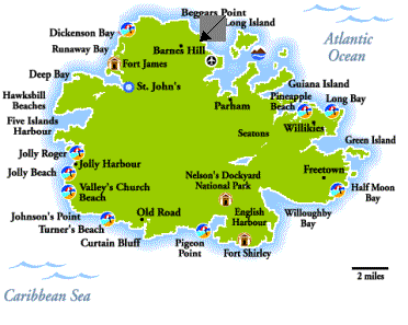 Antigua è una delle Antille Sottovento, subito a nord alle Antille Francesi (Guadalupa e Martinica, più conosciute).