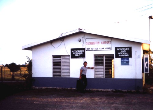 Per fortuna il giorno successivo al pomeriggio è prevista la partenza per Barbuda e dopo il terzo pranzo con le stesse cose (non se ne poteva più, non avrei resistito un altro giorno) salutiamo Antonella e Claudio e ci dirigiamo con Carla e Lelio verso l’aeroporto. Barbuda è una splendida isola caraibica, molto poco frequentata e poco abitata (1200 abitanti) che si trova 40 km a nord di Antigua. Il volo dura circa una ventina di minuti e l’atterraggio sulla pista battuta non è proprio da manuale, ma il posto è meraviglioso e la visione dall’alto della lunghissima spiaggia e della laguna interna è mozzafiato. L’aeroporto di Codrington è buffissimo perché consta di un unico piccolo locale diviso in due e i “bagni” sono in una baracchetta a pochi metri di distanza.