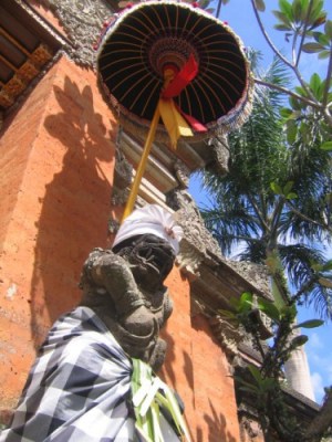 Per i Balinesi gli spiriti degli dei sono ovunque anche se non li si vedono, la religione è una radice fondamentale, ed è sopratutto insegnamento ordine e stile di vita, per questo ogni mattina fanno offerte per rendere omaggio agli dei buoni ed allontanare gli spiriti cattivi che ignorano, cosi che appunto riescono ad scacciare dalla vita di tutti i giorni i difetti le cattiverie gli egoismi e le negatività, acclamando attraverso le offerte le musiche e le preghiere la bontà dei loro avi.Antonio è cattolico ma anche se straniero come noi ci introduce al galateo dei templi, va a casa sua per prestarci i suoi sarong e la sciarpa da visita, entriamo nel vivo della celebrazione, ci fa stare sul retro del templio senza assolutamente farci avvicinare al tabernacolo dei bramini per le foto e non ci fa mai voltare con le spalle, perche spiega che è segno di grave mancanza di rispetto e maleducazione.