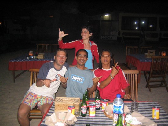 Cena a base di aragosta davvero, sulla spiaggia, a due passi dal mare siamo al Pudak cafè tel. 0361/553800 con le torce accese , con la sabbia nei piedi e la musica nelle orecchie, gentilmente proposta dai ragazzi locali che per qualche soldino allietano le nostre e loro serate a ritmo di chitarre e tamburi, da sogno… siamo davvero in vacanza o forse semplicemente stiamo assaporando un nuovo mondo fatto solo di semplicità e di magia.