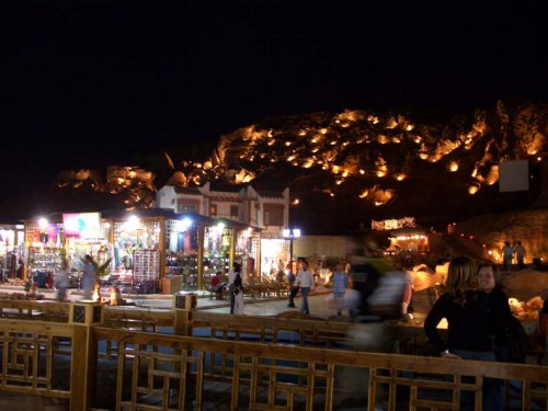 Dopo la visita alla chiesa Copta ripartiamo alla volta di Sharm vecchia, arriviamo e facciamo la prima tappa in un negozio dove ci spiegano e ci fanno una piccola dimostrazione della costruzione del papiro, dalla pianta, di cui si usa la corteccia, al prodotto finito con i vari passaggi, messa a bagno compresa fina ad arrivare al risultato finale del Papiro, che è tale (diverso da quello falso) se ha le strisce della pianta intrecciate orizzontalmente e verticalmente e non in un solo senso, segue poi vendita a noi escursionisti a dei prezzi per quanto ho visto dopo, alti. Ovviamente abboccano in parecchi e non usciamo più da quel primo negozietto. Finalmente usciti inizia il giro della città, nel frattempo è tramontato il sole ed è decisamente notte. La città si è come ravvivata improvvisamente è tutto un brulicare di negozi e negozietti, dai mille colori e dai mille articoli allinterno, non cè un negozio per un solo genere (forno a parte, per il pane e i negozi di alimentari) tutti tengono di tutto e tutti fanno a gara per farti entrare nel negozio con la scusa di guardare soltanto e con la speranza di appiopparti qualcosa, allinizio è simpatico, ma alla lunga diventa fastidioso. Alla metà circa di questo girovagare fra i negozi, si apre uno spiazzo artistico, nel quale ai visitatori è offerto uno spettacolo (un po consumistico), ma decisamente carino: sulla montagna sono state piazzate tutta una serie di faretti che la illuminano in moltissimi punti e sotto di essa è stato ricavato una specie di locale notturno con bar e vari negozi, con accesso regolato da un ponticello eretto su un corso dacqua artificiale generato da una cascata che scende giù dalla montagna illuminata. Non cè che dire se volevano ottenere un effetto scenografico, ce lhanno fatta. Finito il tour ci viene concessa una mezzora per lo shopping, qualcuno ovviamente ne approfitta e finiamo col rientrare in albergo tardi. Pazienza gli inconvenienti del gruppo. Cena e a teatro a vedere lo spettacolo organizzato dallanimazione: il Gioco delle Coppie una sorta di imitazione dello spettacolo televisivo di Marco Predolin. Devo ammettere che sono andato piuttosto scettico, su consiglio di Paola, ma ci siamo divertiti tantissimo, ci hanno fatto sbellicare dalle risate complimenti a tutti e soprattutto alle quattro coppie di turisti che si sono prestati al gioco davvero simpaticamente. A nanna verso mezzanotte.