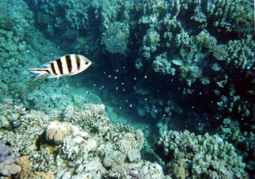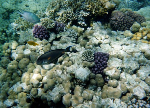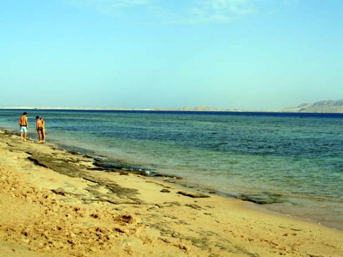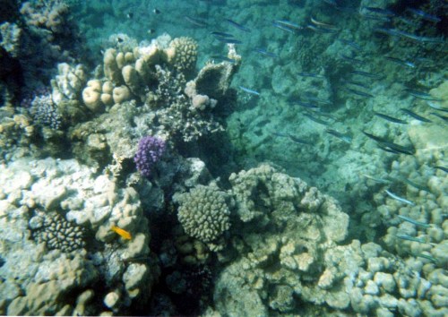 Alla mattina ci rechiamo in spiaggia non troppo presto (verso le 10:00) anche a causa dei festeggiamenti della sera precedente e approfittando anche dellannullamento dellescursione a Ras Mohamed con il bus, organizzato dalla Teorema (con poca convinzione) per mancanza di partecipanti, si doveva partire alle 08:00. Dopo un po di relax ci rechiamo sul pontile, appuntamento alle 11: 00 per effettuare lo snorkelling accompagnati dalla guida dellanimazione, percorriamo un bel tratto di barriera corallina verso sx, contro corrente per poi averla a favore al ritorno. Ancora uno spettacolo sublime ci appariva sotto di noi, a una profondità variabile tra i 2 e i 10 mt., si vedevano stormi di pesci multicolore sfrecciare sotto di noi o semplicemente giocare tra i coralli, qualcuno più curioso ci osservava con sguardo stupito (eravamo in un gruppo di una quindicina): bellissimo un pesce balestra azzurro, due pesci angelo imperatore, uno sciame impressionante, sembrava un muro, di fucilieri di Suez una specie di grosse sardine locali azzurre e argento, davvero uno spettacolo.