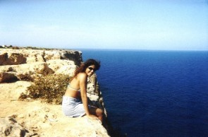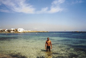 il fido bolide con Estany Pudant e carciofona.Parliamo delle spiagge, (tralasciamo il discorso nudismo non parlatene PRATICATELO!), le più belle senza dubbio quelle di Illetas, quelle del Levant e , ultima ma prima in bellezza e caraibicità, le spiaggie dellEspalmador, raggiungibile via mare attraverso una striscia di sabbia che collega il Pasdu Trabucador allisola, oppure con la barca (la mitica Barca Bahia!), che si può prendere al porto de La Savina o allattracco alle Illetas presso il chiringuito Es Ministre (ma qua si ferma solo se il mare non è mosso), la quale è una validissima alternativa (a 1500 pts andata e ritorno) (da La Savina ci impiega circa 25 minuti) per andare allEspalmador senza rischiare di bagnare tutta la roba tentando di tornare indietro dallisoletta la sera quando si alza la marea. E poi le correnti in quella tratta sono molto forti quindi, con la marea con lacqua al torace, la traversata diventa già parecchio difficoltosa. (anzi, non avventuratevi Baywatch o Gesù Cristi nella traversata se non siete più che sicuri delle condizioni, in quella tratta le correnti sono davvero pericolose).