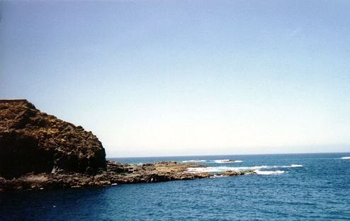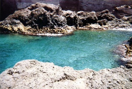 Qui si poteva fare il bagno, sotto c’è tutto il fondale compatto di lava solidificata, per la serie ” se ci sono le onde da surf , è meglio evitare”