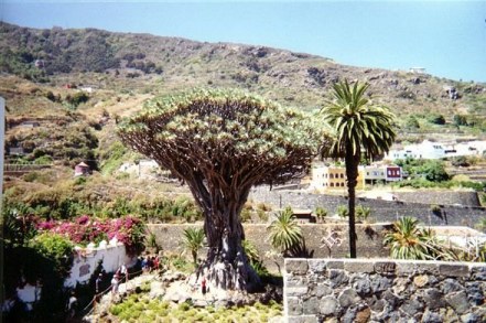 Una cosa che mi ha affascinato tanto, è stato anche il Drago Millenario. Questa piante ( Dracaena Draco) è diffusa su tutte le isole, in genere se ne trovano di alte 2 metri o poco più, questa invece è enorme ( circa 15 metri), basta fare il confronto con le persone che stanno ai suoi piedi. Non è una pianta che cresce allargando il tronco ad anelli ogni anno, è infatti della famiglia delle cipolle e questo ha creato grandi problemi ai botanici per la sua datazione. Si ritiene infatti che abbia dai 1000 ai 5000 anni di vita. La sua fioritura avviene ogni 50 anni ( sostanzialmente un metodo per dare più probabilità ai semi di non venire mangiati da predatori che conoscano il suo periodo di fiornitura, tecnica che adotta anche una varietà di bambù, ma ogni 120 anni).